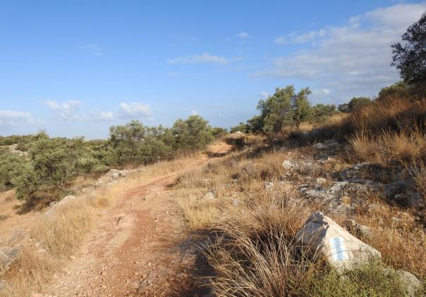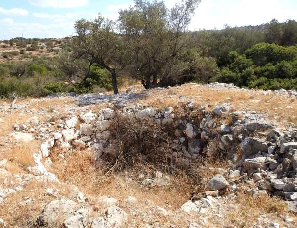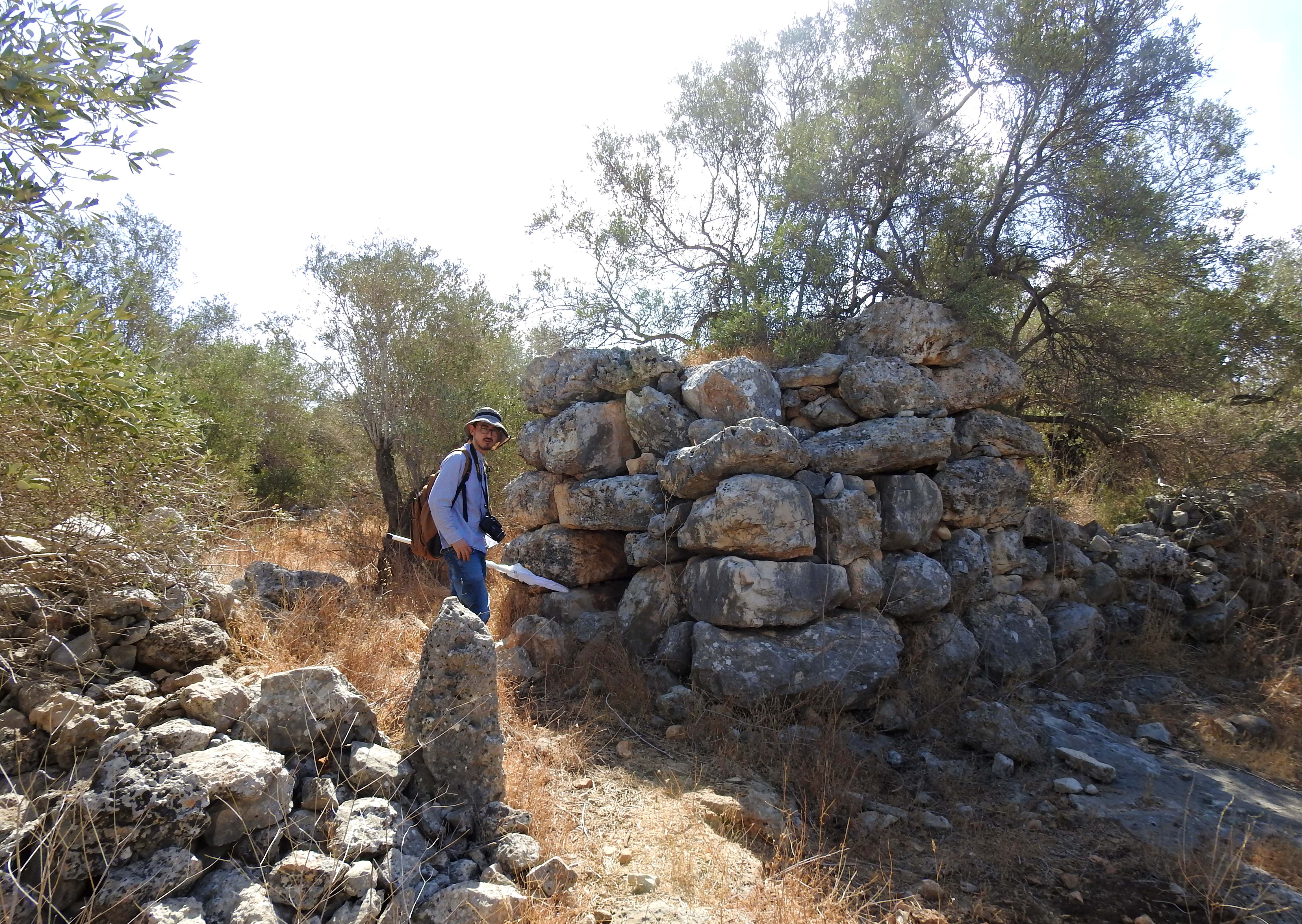 We too crossed over and found some old encampment where some people seem to have stayed. Among the rubbish were some faded food wrappers which were mostly in Arabic, one being a tomato paste produced in or distributed from Hevron (Hebron). Leaving the refuse behind, we began to hike uphill in an easternly direction. There were many fieldstone walls, acting as terraces on the slope, and then something interesting came into sight.