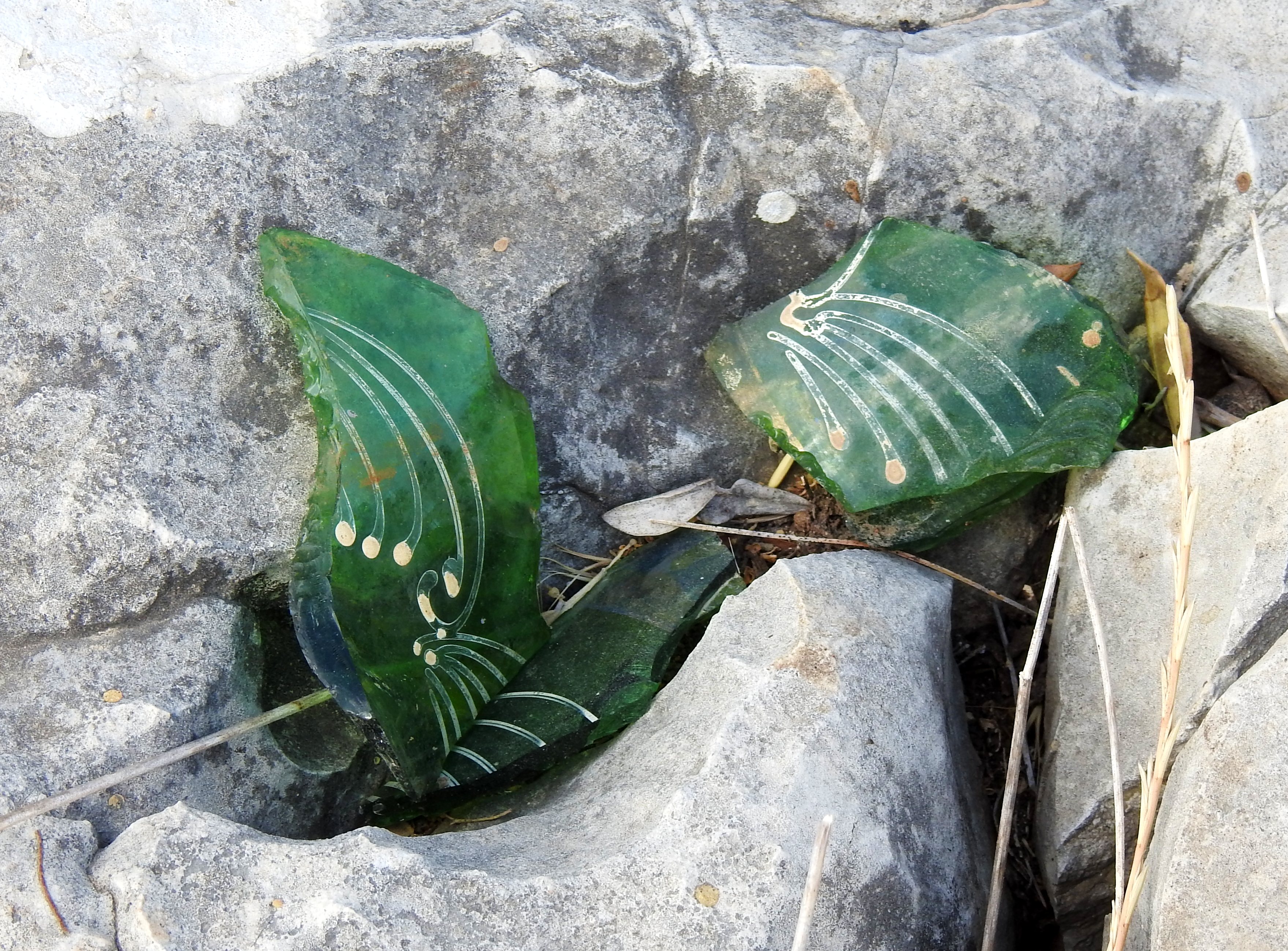 At some point we flushed a green sandpiper, which flew off to a further segment of the stream to then be flushed again – quite incidentally, I assure. As we reached closer to the main road, the 505, the landscape changed a bit. The land became flatter and the grasses were thick and dried by the harsh summer heat. We stumbled upon some interesting painted green glass, perhaps Ottoman, perhaps more modern. A giant argiope spider, waiting patiently in her web, gave us a bit of a shock, but then something even more startling occurred.