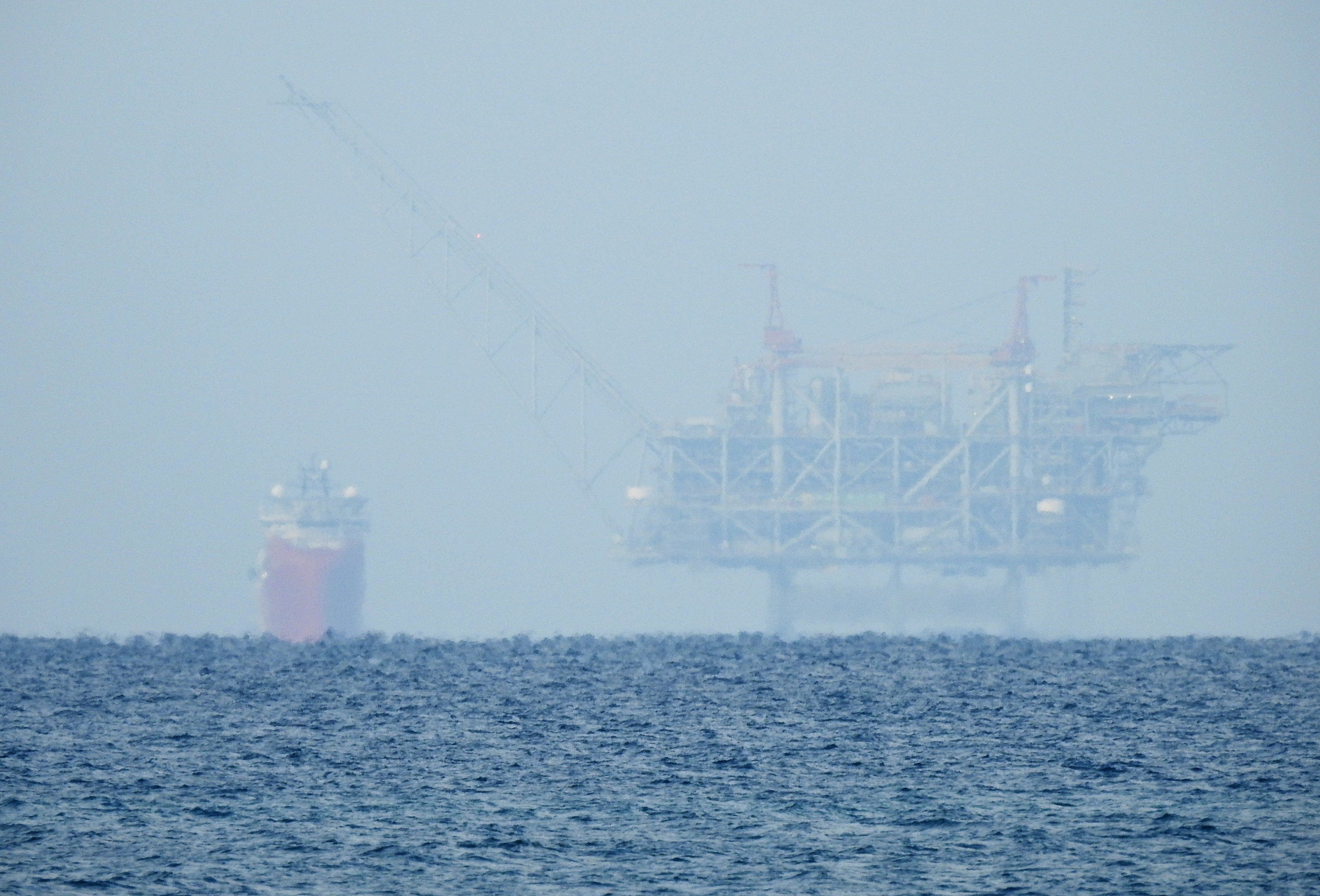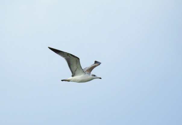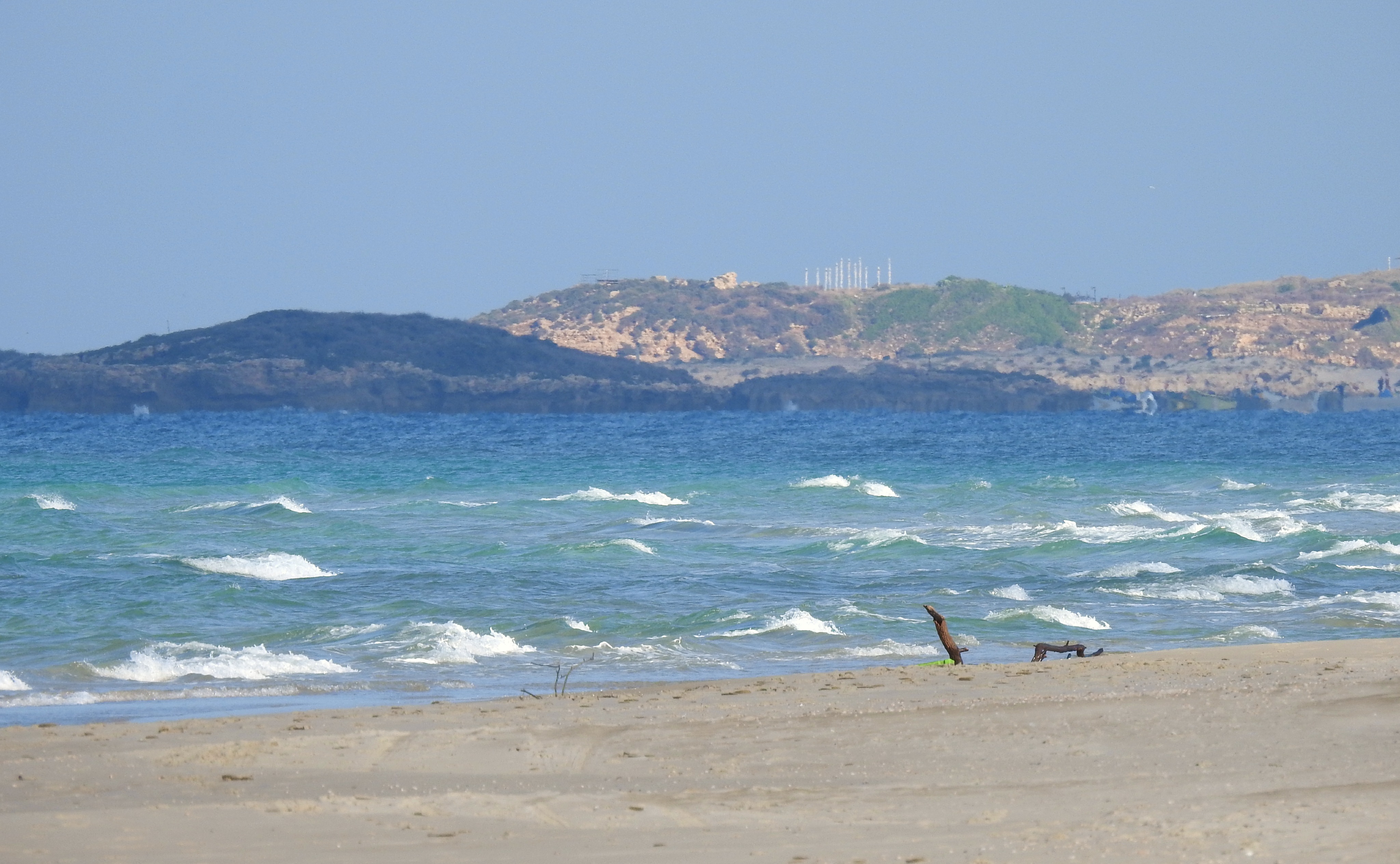 As we loitered on the vacant, windy beach, other, more common species of gulls drifted past, as well as a naval vessel that looked like it was dragging a giant parachute behind it. My last sea-going gull that day was an unidentified one, soaring in front of the Leviathan natural gas processing platform anchored ten kilometres out to sea.