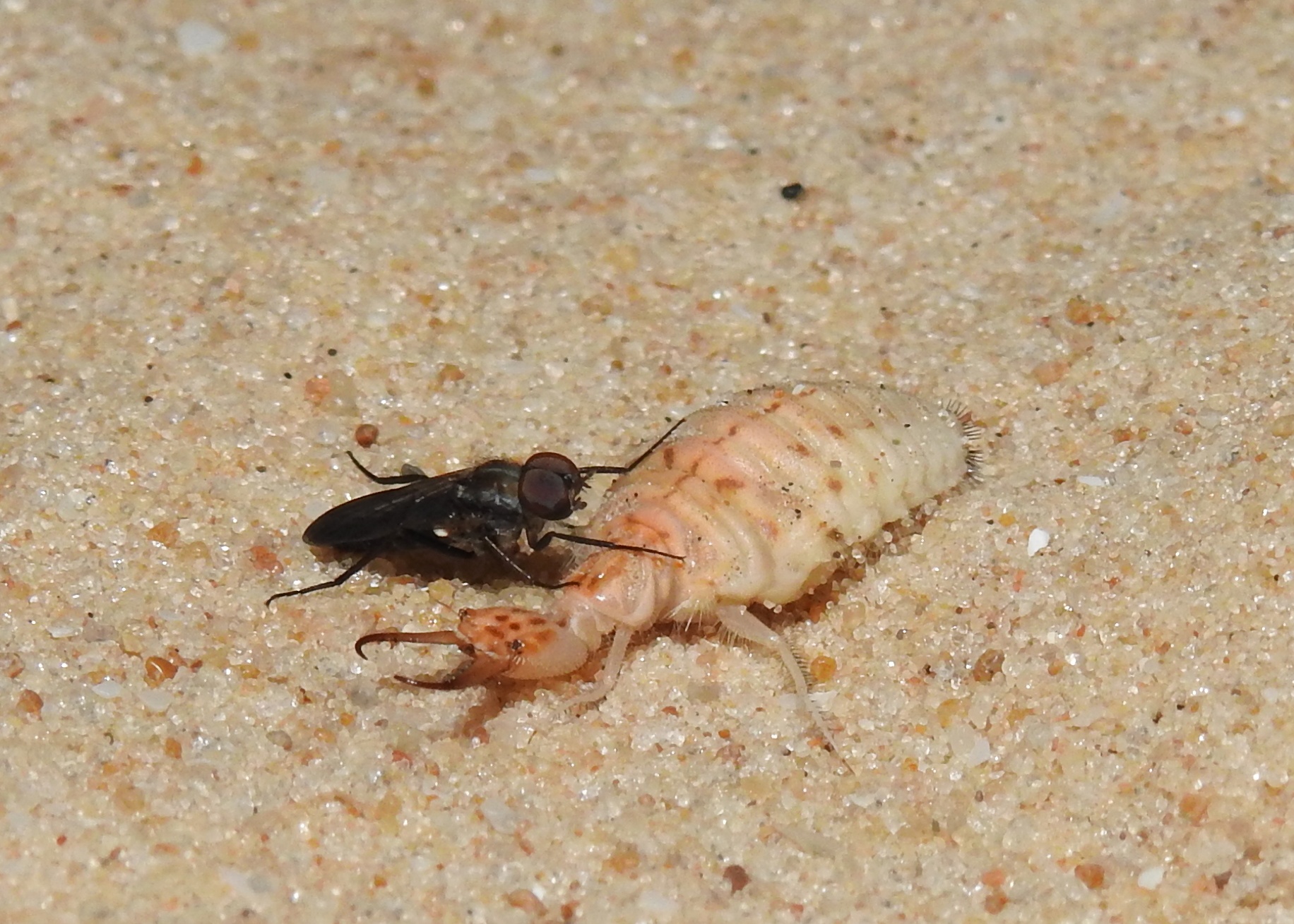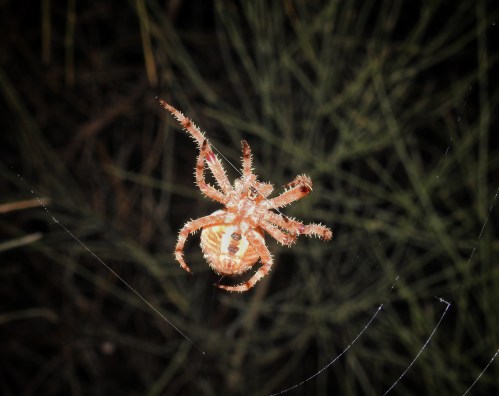 A full moon slowly rose behind us, and while we waited impatiently for darkness to settle, we shared a snack of some mini kabanos sausages. Once sufficiently dark, when the creatures of the night were presumed to have left their hidey-holes, we flicked on our flashlights and began traipsing around. I decided to start with the UV flashlight, its purple-blue light dancing over the sand and vegetation underfoot. It kind of felt like cheating as I spotted one scorpion after another with the greatest of ease. These were presumably all African fattail scorpions, but none of the evening’s specimens allowed for a good enough photo required for proper identification.