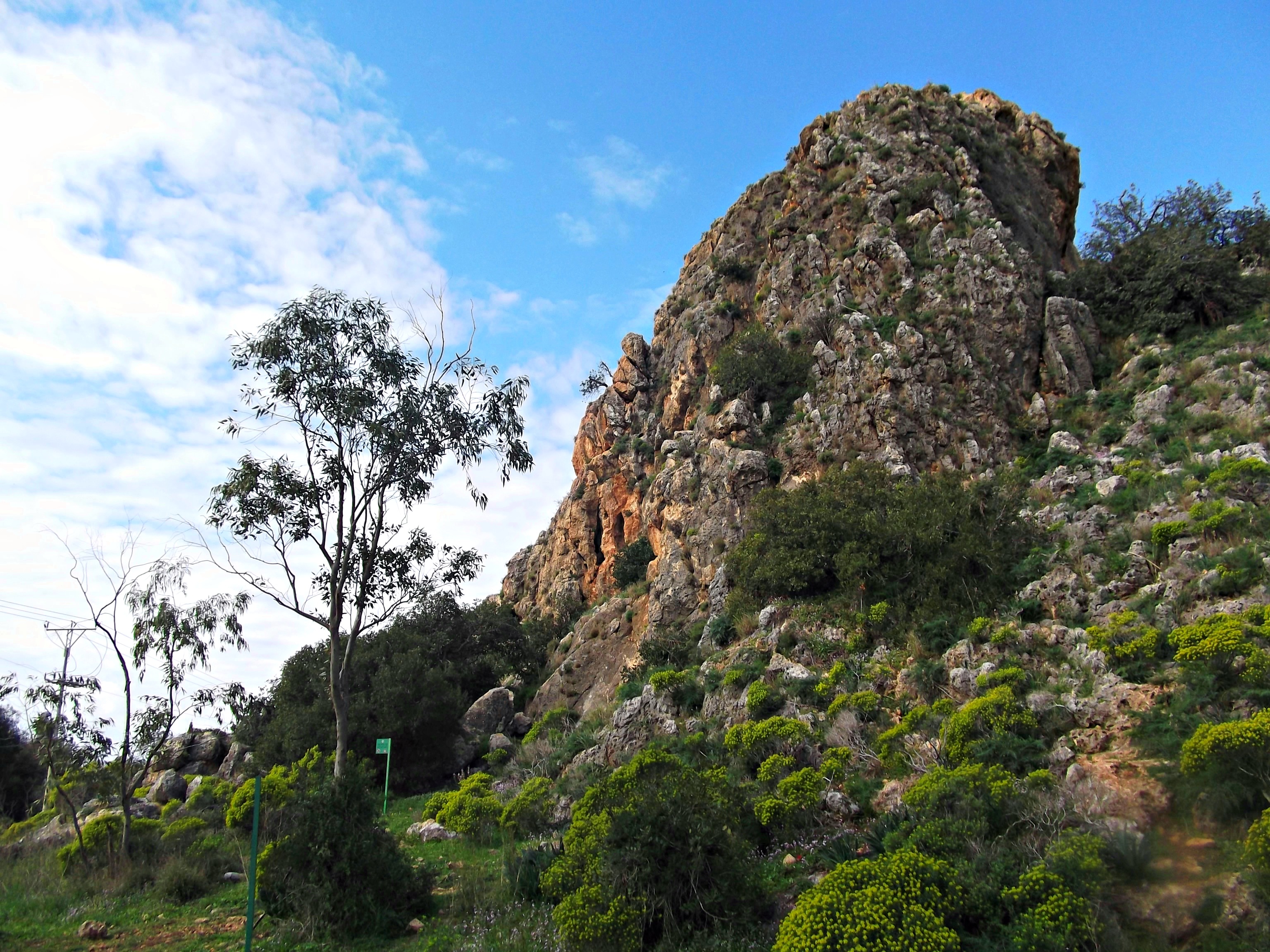 The day’s tours began at the nearby Mizgaga Museum where we heard about the museum’s origin story and the history of the area from Dr Kobi Cohen-Hattab and Dr Avi Picard. With that we boarded our bus and were driven up Mount Carmel to pay a visit to the memorial for those killed in the terrible wildfire that ravaged the mountain in 2010. There, in the shade of the twisted metal structure, we heard from Dr Tamir Goren, another of the department’s experts in the modern era. We were then shuttled over to the trailhead of the Little Switzerland area trail, where we struck out at brisk pace through the mountainous woods. We stopped here and there along the way and eventually had a nice long break in the curve of a geological formation on the mountainside.
