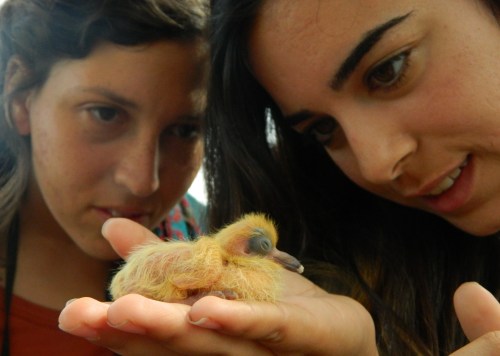 As we walked, chickens and peacocks meandered around alongside us, a recurring theme throughout the entire park, their distinct calls titillating Amir and encouraging him to emulate them. After seeing some farm animals and a mara rodent or two, we headed for the enclosure where the squirrel monkeys can be fed by paying visitors. We purchased a small container of mealworms and situated ourselves so that the hungry squirrel monkeys could climb up onto us for a quick snack. One bold monkey scampered up Amir and I and helped himself to a few writhing mealworms (see the short video HERE). Another monkey finished off the rest of them from Bracha’s patient, out-stretched hand.