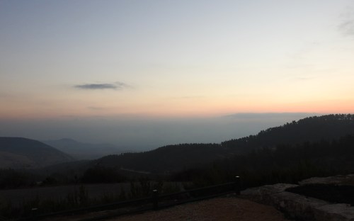 At last, we arrived at the enclosures where the other monkey species are kept. We entered a chain-link tunnel that passes through the capuchin monkey yard and took photos of one another. There were some lemurs and some rabbits of sorts and then the trail came to an end, a gate leading us back out into the real world. We said goodbye to our primate friends and reclaimed our stroller and bags. There was a nice picnic table that was available, giving us a pleasant place to enjoy some lunch before getting back into the car for the rest of the drive to Ma’alot.