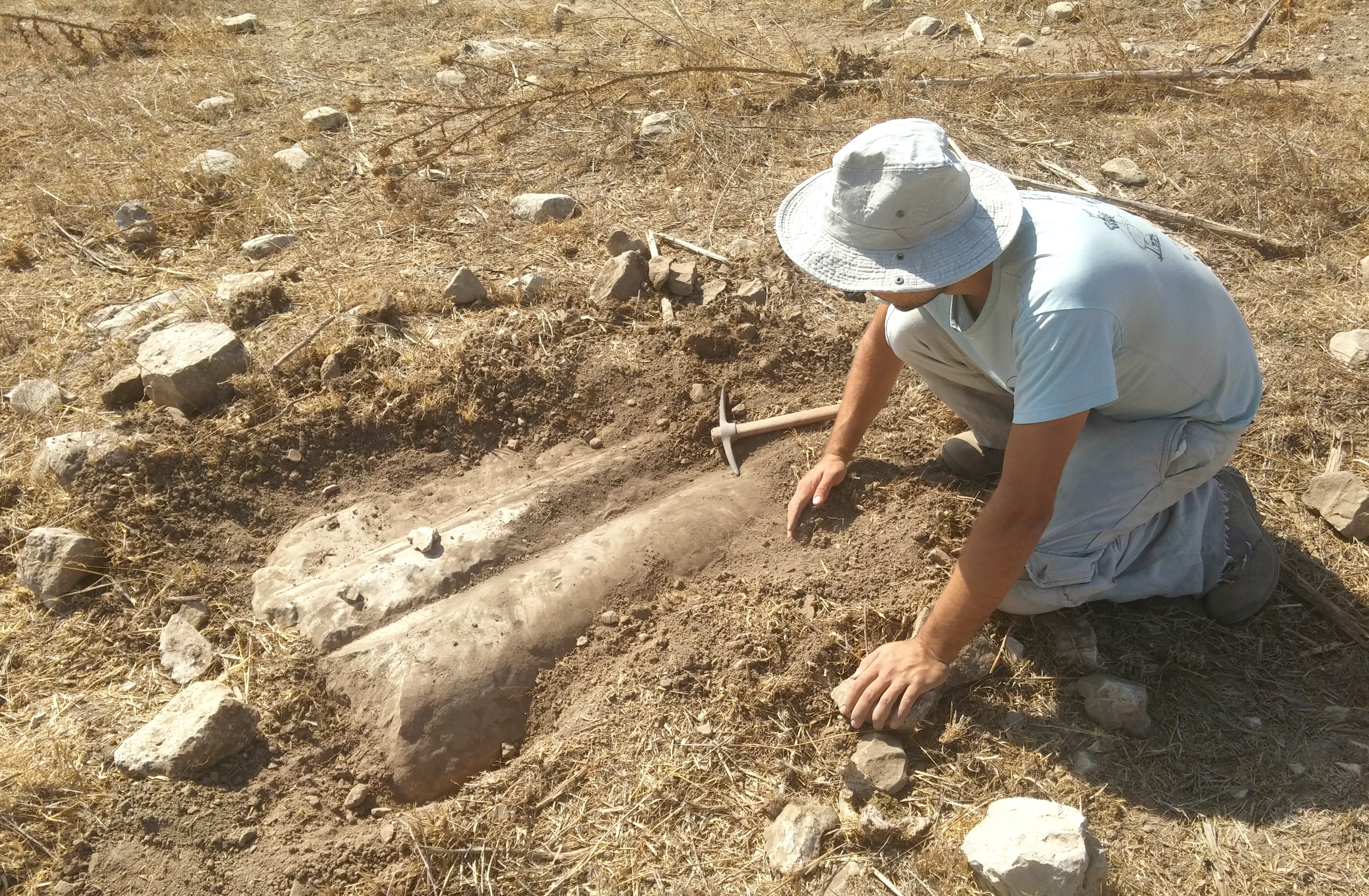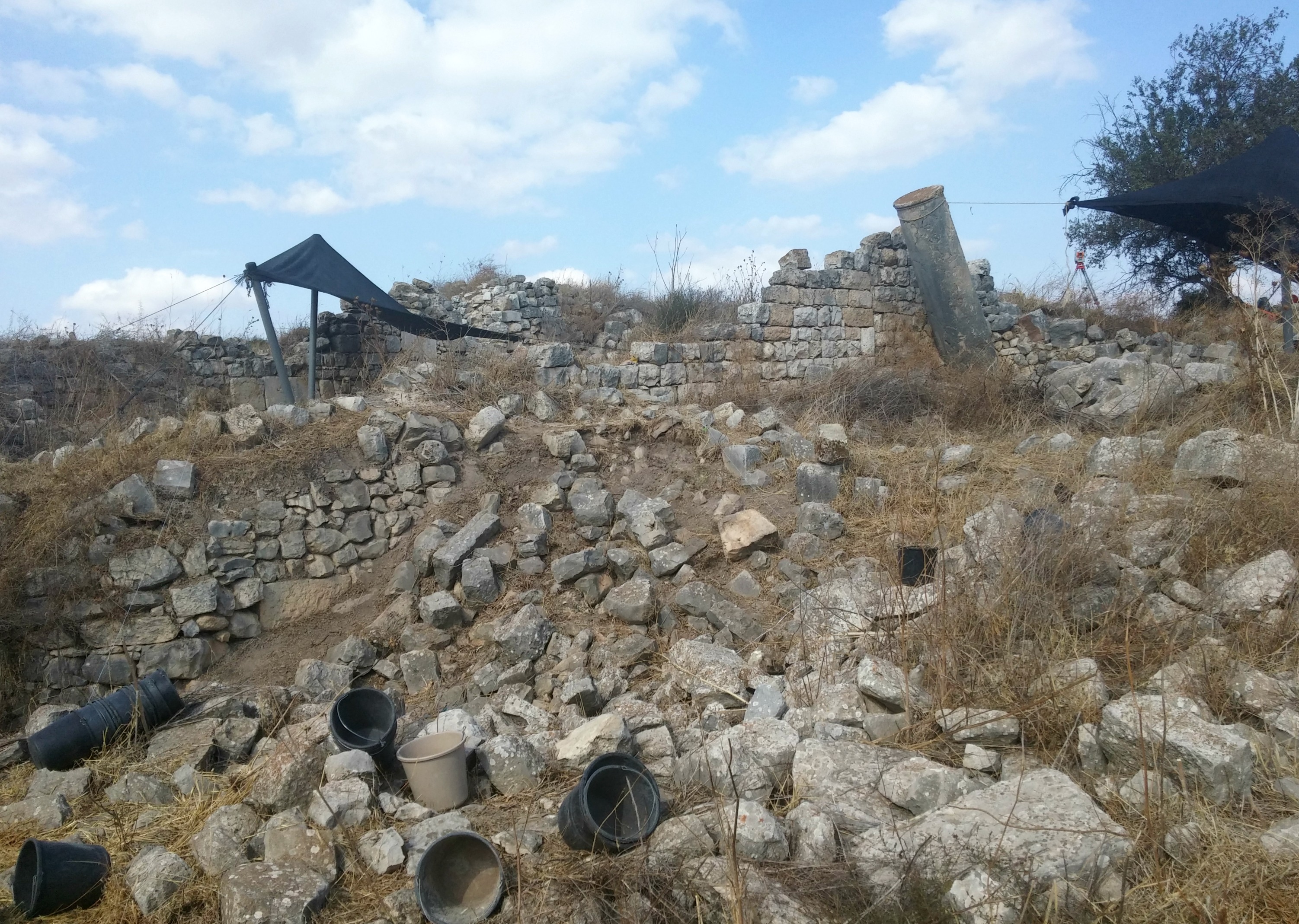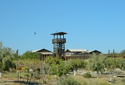 Exploring around a bit, I noticed the presence of some small birds such as crested larks in the field, great tits in the trees and a goldfinch or two on the fence. In addition, I examined the ancient sarcophagi on display, and a replica of a large basket used by King Herod to attack Jewish rebels hiding in the inaccessible cliffside caves. When the final bus arrived, and we were organised in smaller groups with each our own tour guide, we set off on the trail.