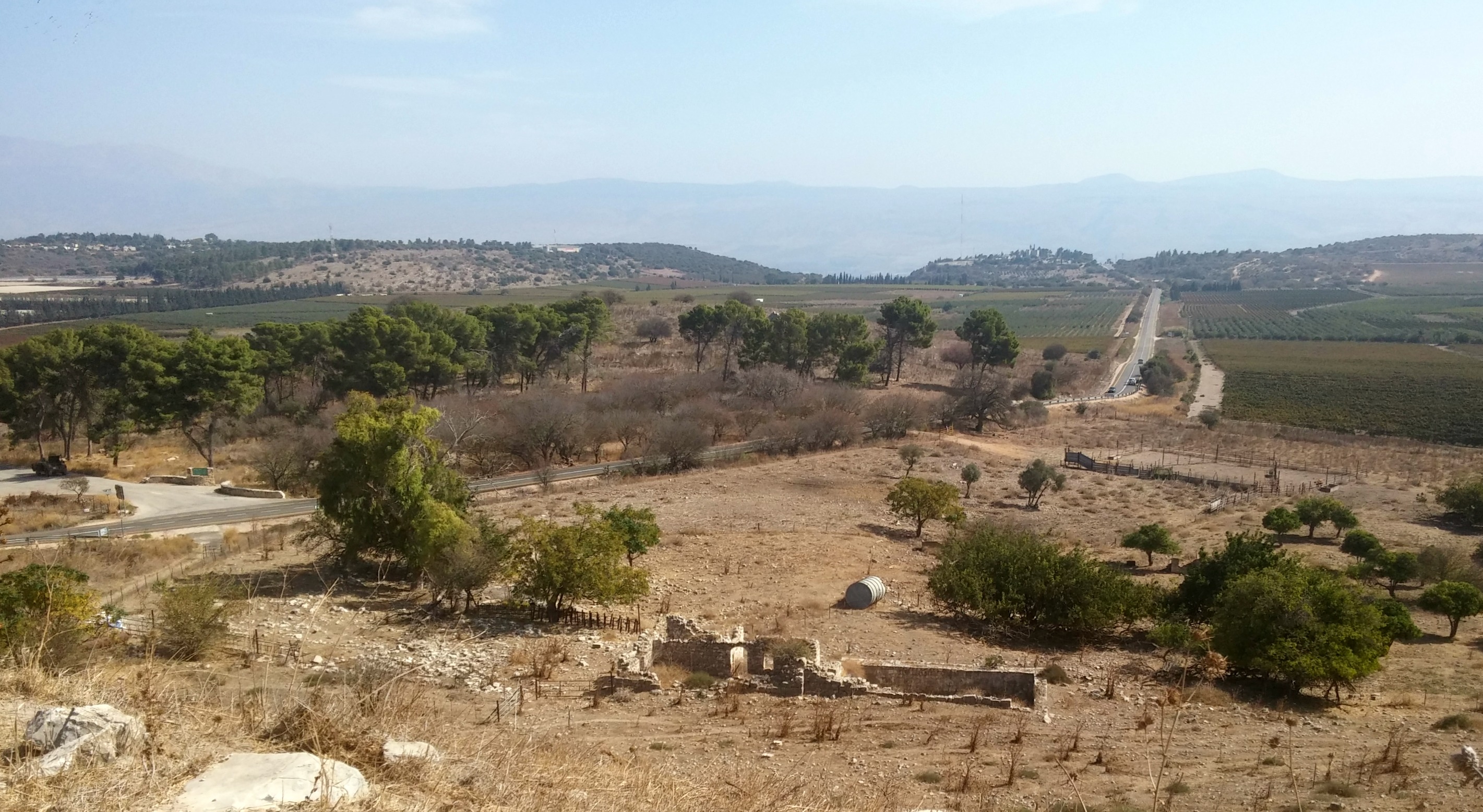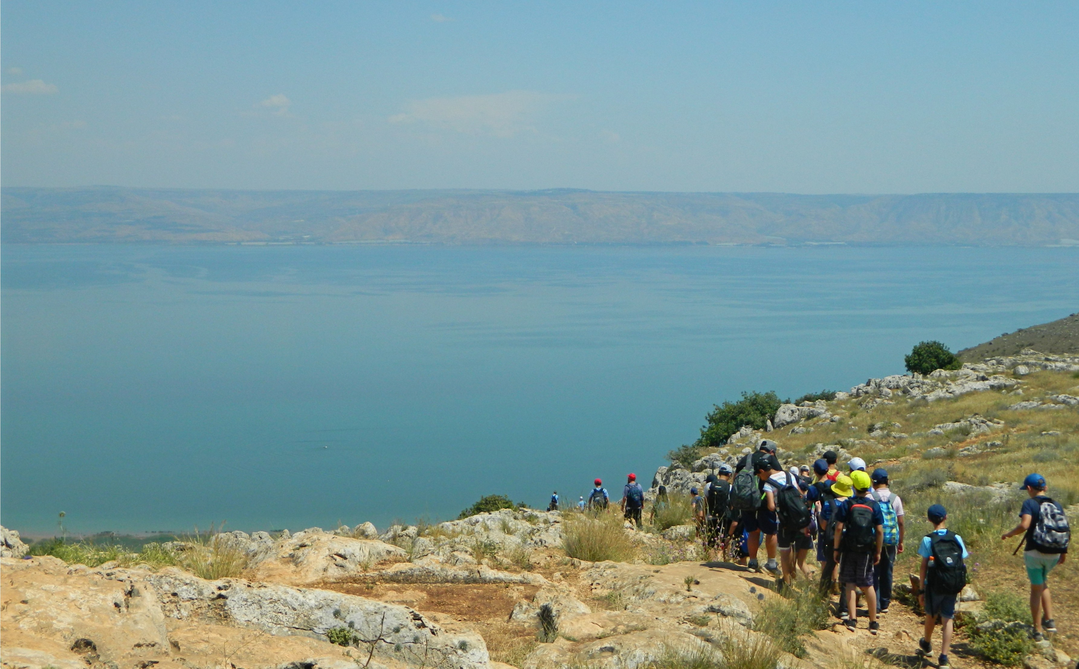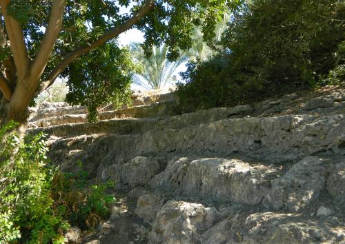 While I was admiring the view I saw my group begin the descent down the slope, so I ended my side adventure and caught up with them within minutes, joining them on the way down. At the bottom we found the flowing water of Nachal Arbel, and sat beneath large jujube trees to take a short break as we waited for all the classes to arrive. The sweet smell of the fallen jujube fruits provided an interesting setting as I scans the nearby slope of Mount Nitai and the blue skies above.