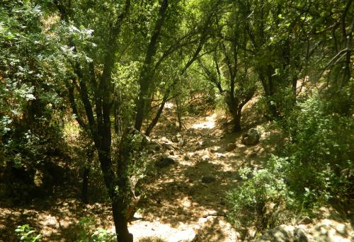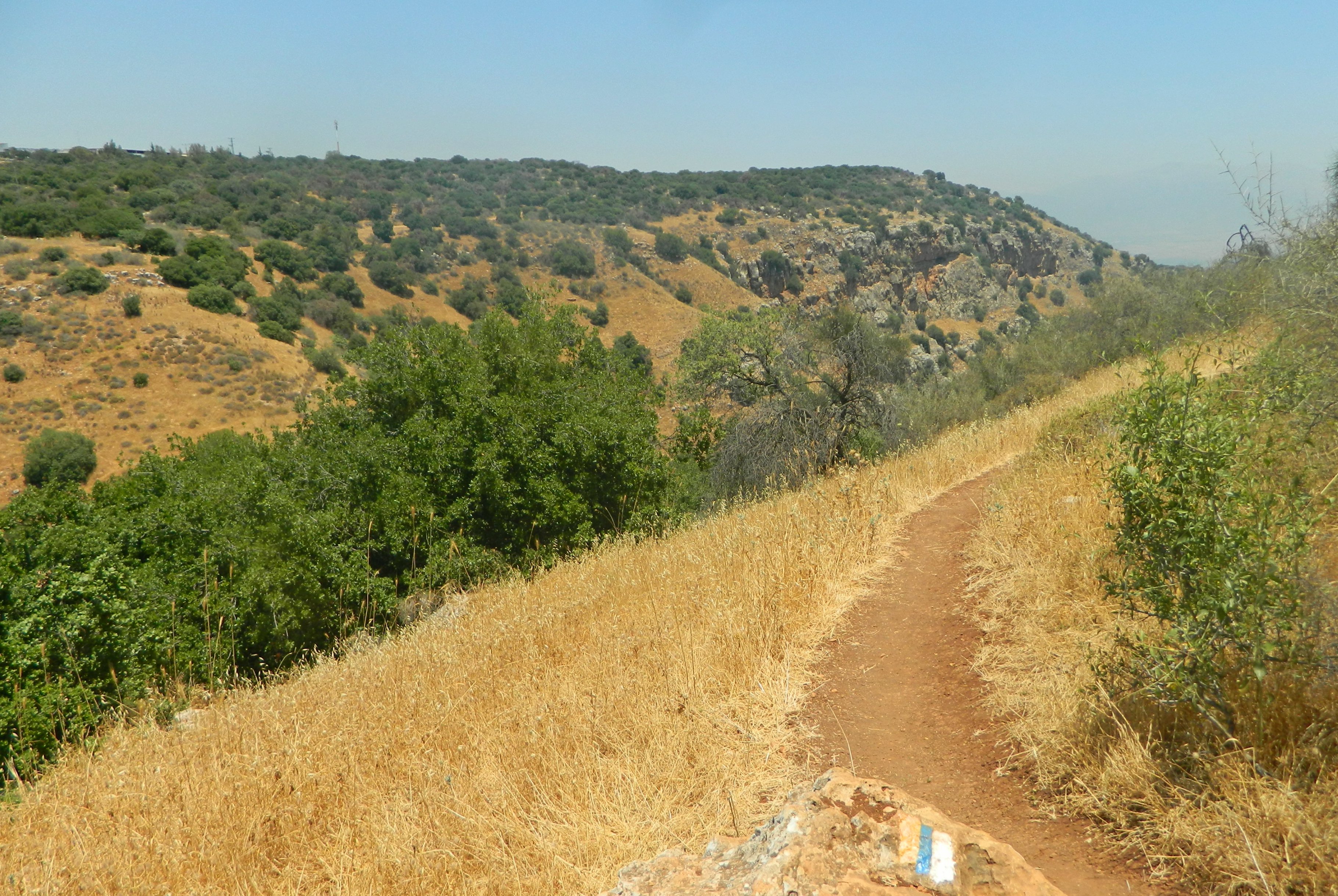 More cows were gathered outside, but since we hadn’t come for bovine viewing, we continued onwards. Up ahead we found a sign that read “fortress and caves” straight ahead, but our guide was taking us downhill along the Israel National Trail to “Ein Arbel” and “Wadi Hamam”. I took advantage of the junction rest period to go off and explore on my own.