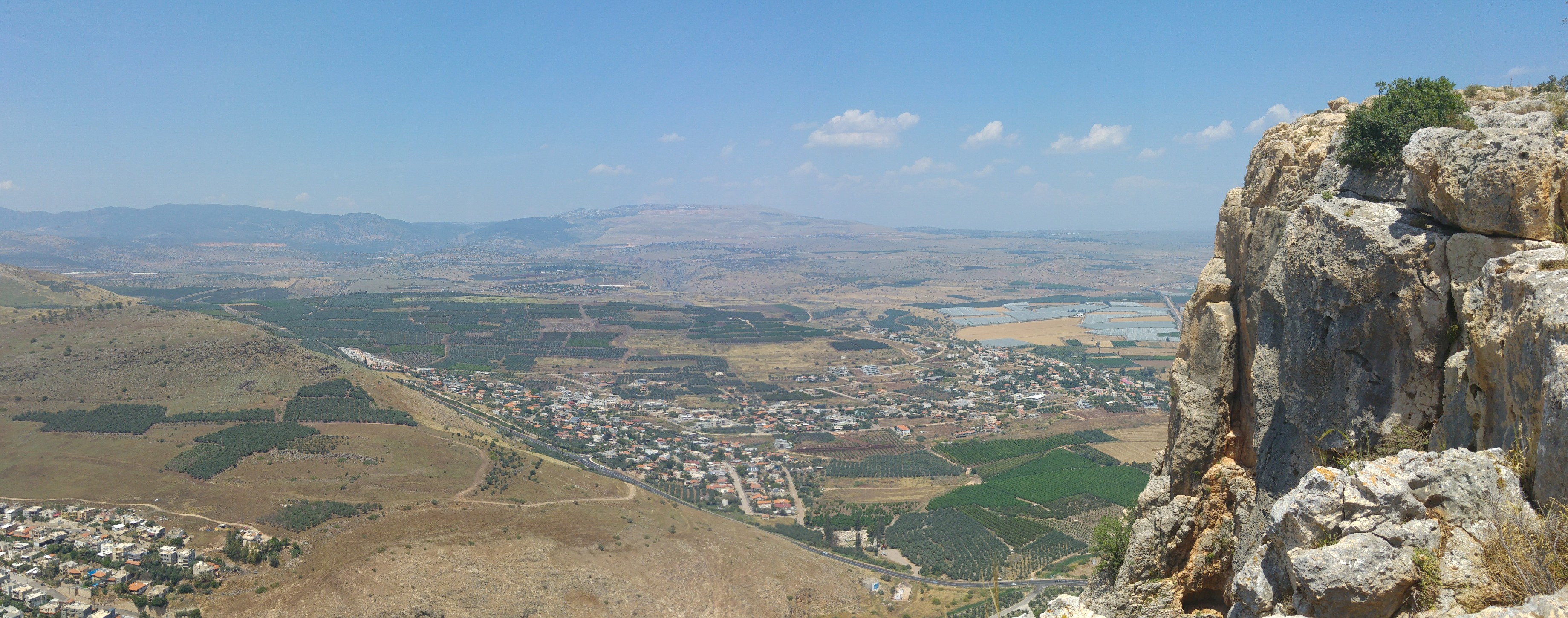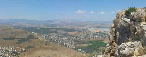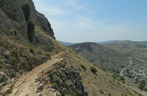 The morning of this trip began at the school where we boarded tour buses and began the drive up north via Road 6. Along the way I got acquainted with our tour guide, Eric Grosser, and spotted small flocks of white storks here and there alongside us. Our destination that day was the peak of Mount Arbel, with its gorgeous vista over the Kinneret (or, Sea of Galilee). We pulled into the parking lot of the national park and awaited the arrival of the final bus.