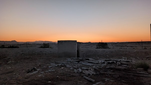 A full moon slowly rose behind us, and while we waited impatiently for darkness to settle, we shared a snack of some mini kabanos sausages. Once sufficiently dark, when the creatures of the night were presumed to have left their hidey-holes, we flicked on our flashlights and began traipsing around. I decided to start with the UV flashlight, its purple-blue light dancing over the sand and vegetation underfoot. It kind of felt like cheating as I spotted one scorpion after another with the greatest of ease. These were presumably all African fattail scorpions, but none of the evening’s specimens allowed for a good enough photo required for proper identification.