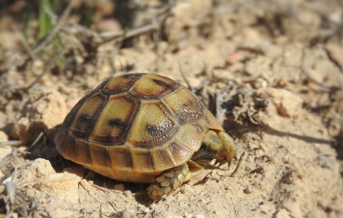 Driving north, and nearing Tel es-Safi, we took a slight detour in the vicinity of Moshav Nahala. Our destination was an old quarry, always a good place to find cool stuff, where we were deposited. Entering the quarry I immediately discerned a bird of prey sitting atop a short tree – a long-legged buzzard. I was excited, no doubt, but there was more to see and the open field in front of us (the basin of the quarry) was alive with the twittering of crested larks.