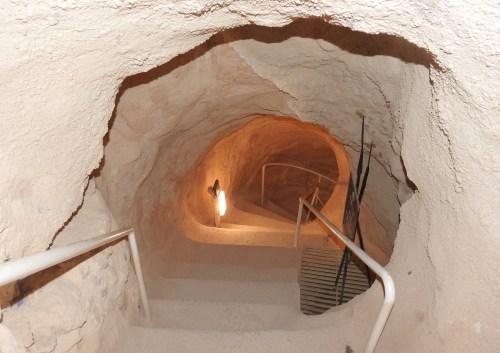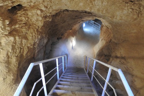 Overhead I could see jackdaws and bee-eaters, but there was something far more exciting watching us from the other side of the quarry. Moshe set up his spotting scope and showed us what he had brought us there for: a little owl was sitting at the mouth of a hewn tunnel, watching us with large yellow eyes. I adore owls, and felt bent on getting a decent picture of this particular specimen.