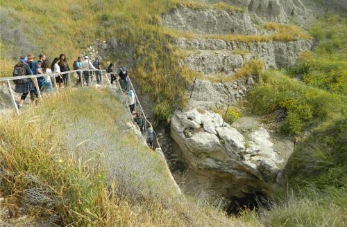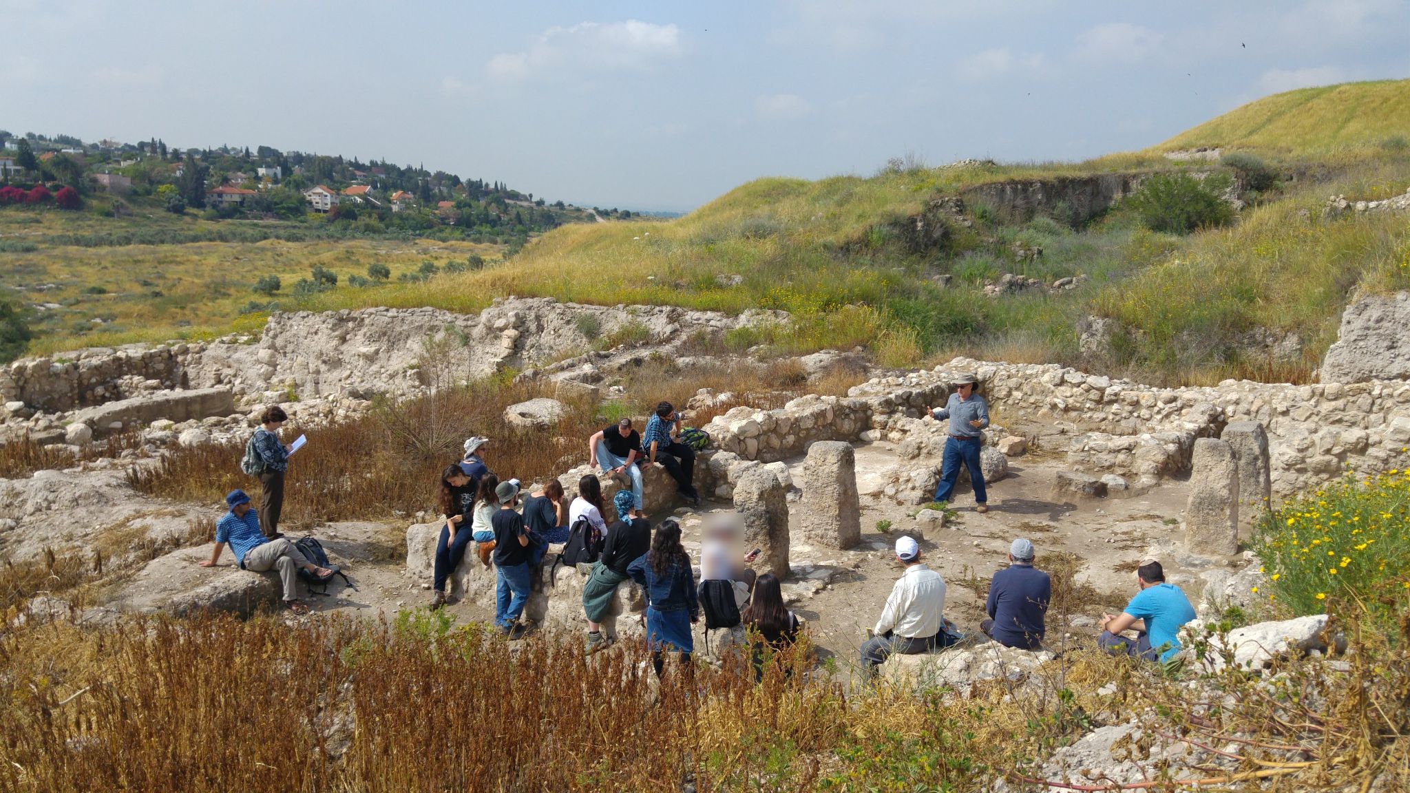 Approaching the tel from the north, I was immediately filled with nostalgic memories of the previous summer when we had so much fun excavating in Area J. I looked out at the familiar hill and wondered to myself where I’d be excavating in a few weeks when the 2018 season would begin. We disembarked at the Ottoman-era antilia well just beside the dry streambed of Nahal Elah and began the tour. Dr Amit Dagan started lecturing about the site and I found myself wandering off in eager anticipation to check up on the excavated areas left untouched since last summer. Since the winter is the wet season here in Israel, the rains ravage the carefully excavated squares all winter long leaving Area D in a surprisingly shoddy condition.
