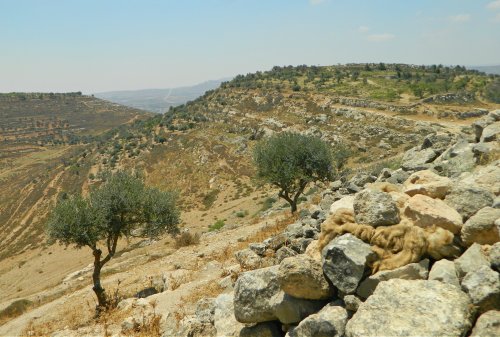 Ending on a high note, we headed back home and resumed our daily lives, until the following Friday. Inspired by our own adventures, and eager to see the famed Har Bracha tehina factory, we got back into our car and drove off in the direction of Shechem (Nablus). Just before we reached the city entrance, we turned left and drove up Har Bracha (or Mount Gerizim). We drove through the Samaritan village and then parked outside the factory. Sadly, the workers are all off on Fridays, so we couldn’t have a production tour, but we managed to buy some wholesale tehina from the big boss and relegated ourselves to enjoying the view atop Mount Gerizim. First we looked towards the northwest, where the urban sprawl of Nablus creeps up the opposing mountain, Mount Ebal. Although I have yet to visit Mount Ebal, there is a famous archaeological site at the very top, believed to be Joshua’s altar from the biblical book of Joshua (8:30–35).