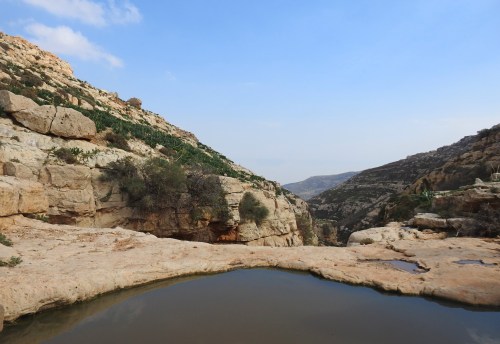 After an agreeable look around, we headed back to the cars to drive down to a local spring, Ein Harsha. It was directly downhill on the southern side of the mountain, the winding road leading us to some fruit trees and an open area to park.