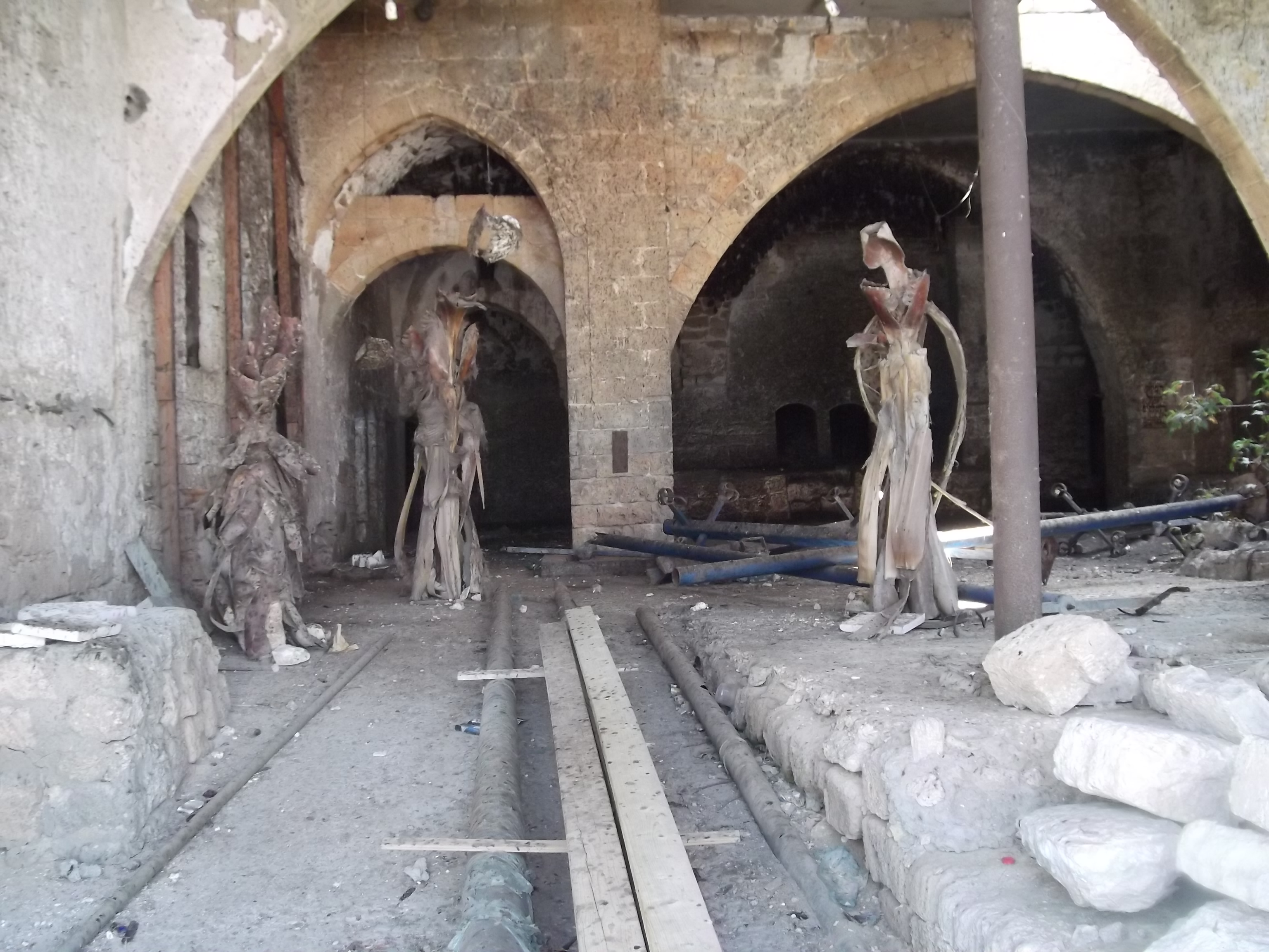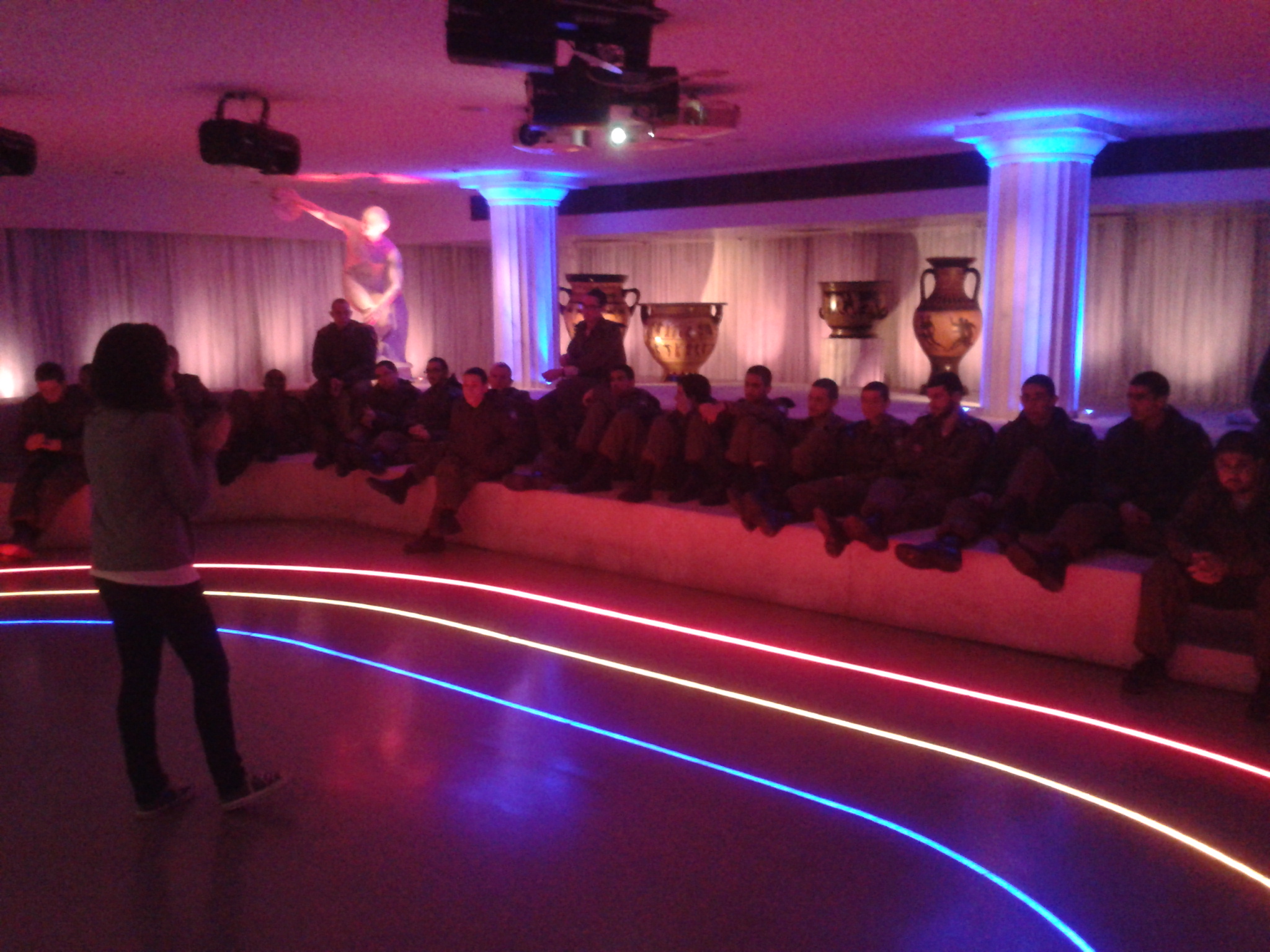 My favourite set was the very first one, however I was unable to photographically capture it. A scene from early 1940s Tel Aviv, the set looked like a WWII-era Paris street corner, minus the Nazis. Even an “old-timey” bicycle was leaning against a metal guard rail, in front of a café’s large picture windows. The tour was given by a soldier girl and everybody had little translation machines that they held to their ears; most of the tour were Spanish speakers, with a handful of English speakers. I opted for the original Hebrew audio to accompany my visual experience, and was happy with my decision. The Palmach group on-screen, represented by modern-day actors and actresses, took us on a path that led to their eventual deployment in the War of Independence, after secret operations and capture by the British. Here is a sculptural depiction of Palmach soldiers using a radio during the war (with ammunition at a premium, desperate Palmach members had sometimes turned to rocks to help fend off the enemy):